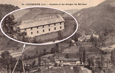 (Cliché et documents ROBIN) Le 2° BCP défile sur la place de la mairie à Jujurieux Une partie de l'ancienne usine Olivier fut alors réquisitionnée comme cantine. Cette installation prend fin le 27 novembre 1942 à la suite de l'envahissement de la zone libre par les allemands le 11 Novembre 1942. Un Avant Projet de chemin de fer d'intérêt local de Cossieux à la gare d'Ambronay le 21 Novembre 1881 Dans un souci d'industrialisation locale un tramway fut envisagé dès cette date sous l'impulsion de Robert Bonnet avec la création des cimenteries. 30 novembre 1877 - Un tragique accident au moulin de la Roche-Noire à Cossieux